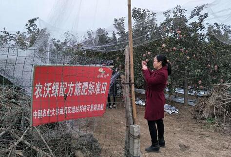 農(nóng)沃綠配方施肥標(biāo)準(zhǔn)田的蘋果,果實(shí)累累,上色早,著色均勻,風(fēng)味濃郁。