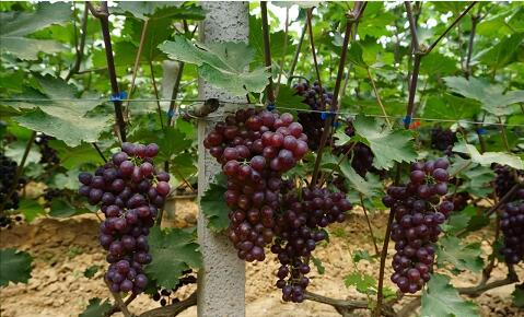 農(nóng)沃綠配方施肥標(biāo)準(zhǔn)田生產(chǎn)的葡萄穗大粒勻,色澤誘人,酸甜可口。