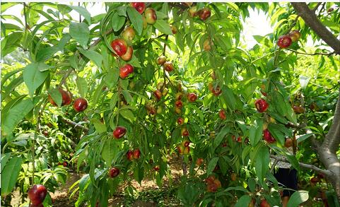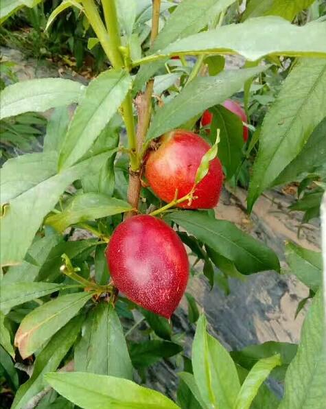 農(nóng)沃綠配方施肥標(biāo)準(zhǔn)田的未來(lái)一號(hào)油桃果面亮麗,全面著濃紅色,果實(shí)提早成熟10天左右,單果重在200g左右,果實(shí)口感甘甜,桃味濃郁。