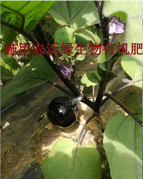 施用農(nóng)沃綠生物有機(jī)肥的茄子,葉片厚實(shí)顏色深綠,植株健壯,茄子表皮光滑光澤度好。