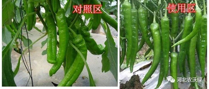 沖施農(nóng)沃綠含腐殖酸水溶肥的辣椒果面平整有光澤,商品性好!