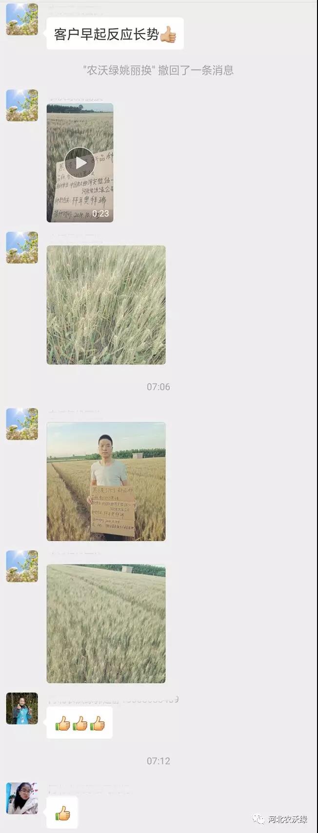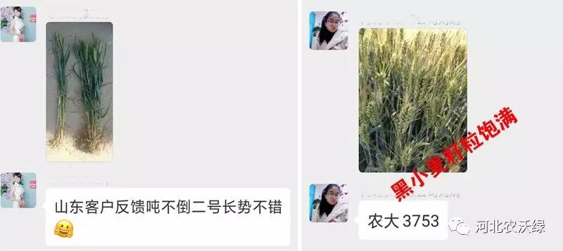近期,小麥即將成熟,由我們中國農(nóng)業(yè)大學曲周實驗站—河北農(nóng)沃綠生產(chǎn)銷售的噸不倒2號小麥、農(nóng)大3753黑小麥等均接到客戶的反饋,病害少,穗大、顆粒飽滿、抗倒能力強、長勢好,獲得客戶的一致好評;下面我們一起來看下客戶的反饋,感受下豐收的喜悅。