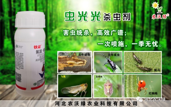 措施:蟲害防治可噴施農沃綠蟲光光殺蟲劑,主要防治所有刺吸式口器和咀嚼式口器害蟲,包括天牛成蟲和幼蟲、盲蝽蟓、飛虱、薊馬、蚜蟲、甲蟲、潛葉蛾、松毛蟲、紅蜘蛛、葉蟬等等。2小時開始死蟲,24小時后達到較大防治效果。根腐病害可以使用農沃綠根腐靈灌根使用,以菌治菌,防治結合,活化根系,增強根系吸收營養(yǎng)能力,使植株生長健壯,減少病害的發(fā)生。