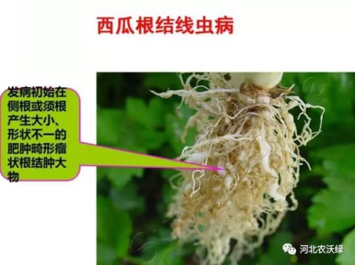 據(jù)了解,西瓜根線蟲危害西瓜的根部,以側(cè)根和須根為主。它在侵染時會用鋒利的口針刺穿根系,吸取當中的營養(yǎng)。此外,西瓜根線蟲在穿刺根部的同時,還會分泌出唾液,唾液在進入根部組織后會產(chǎn)生化學作用,會使側(cè)根和須根長出大小不等的瘤狀物,也就是西瓜根結(jié)。這些瘤狀物、根結(jié)會阻礙根系吸收肥料和水分,由此就出現(xiàn)了施肥不見效的現(xiàn)象。
