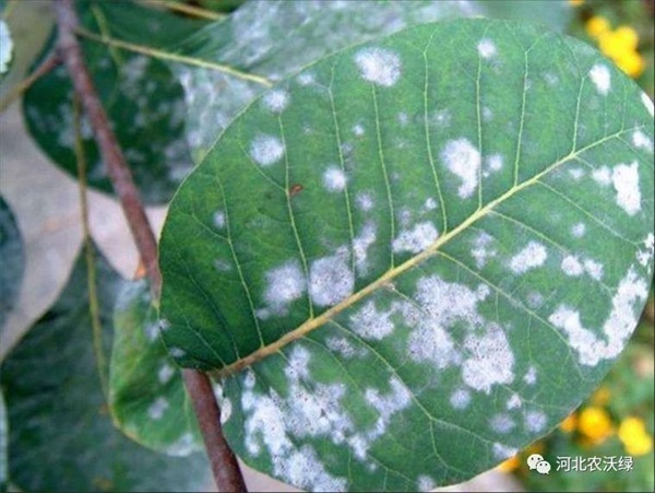 白粉病是黃楊葉片上發(fā)生最為嚴(yán)重的一種病害,基本上從每年的3月份左右就會(huì)開(kāi)始發(fā)病,主要危害大葉黃楊的葉片,病斑多分布于葉面,產(chǎn)生白粉霉斑;病害嚴(yán)重時(shí),葉背和新梢也可發(fā)生,導(dǎo)致葉片皺縮畸形,新梢扭曲、萎縮停長(zhǎng),并引起落葉枯梢。發(fā)病初期,在葉片上散生許多白色圓形小斑,隨著病斑逐漸擴(kuò)大,相互愈合,成為不規(guī)則的大斑,甚至占據(jù)全部葉面。如將病斑表面白色粉層抹去時(shí),在發(fā)病部位呈現(xiàn)黃色圓斑。