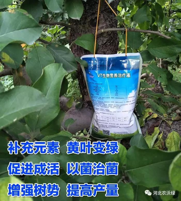 2、合理施肥增強樹勢,黑點病病菌與砂皮病病菌相似,都屬于弱寄生菌,在樹勢弱時極易感病,所以提升樹勢,可有效的增強其抗病能力。使用農(nóng)沃綠VT生物營養(yǎng)治療液給柑橘樹輸液,增強樹勢,產(chǎn)品中富含多種有益菌群,可以預(yù)防病害的發(fā)生發(fā)展。